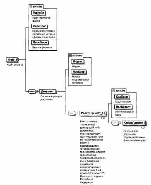 1.19. Формат представления реестра полных таможенных деклараций либо документов, подтверждающих факт оказания услуг по транспортировке нефти и нефтепродуктов трубопроводным транспортом, а также транспортных, товаросопроводительных и (или) иных документов, предусмотренных подпунктами 3 и 4 пункта 3.2 статьи 165 Налогового кодекса Российской Федерации, в электронной форме, согласно приложению N 19 к настоящему приказу;