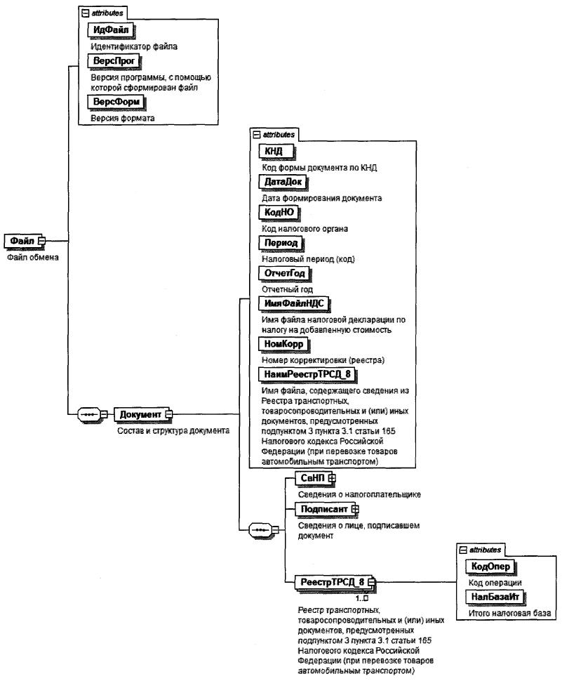 В электронной форме реестр перевозочных документов, предусмотренный пунктами 5 (за исключением абзаца пятого) и 5.1 статьи 165 Налогового кодекса Российской Федерации (далее - Реестр), представляется в виде двух обязательных частей: