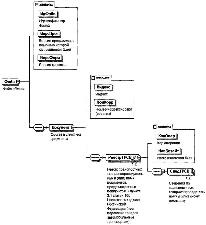 1. Настоящий формат описывает требования к XML файлам (далее - файл обмена) для передачи реестра перевозочных, товаросопроводительных или иных документов, предусмотренных пунктом 3.9 статьи 165 Налогового кодекса Российской Федерации.