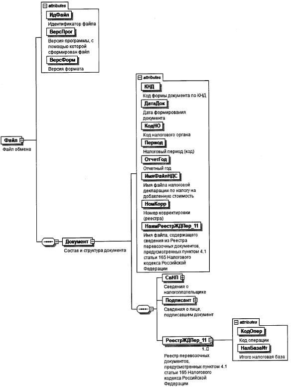 | Реестр перевозочных документов, предусмотренных пунктами 5 (за исключением абзаца пятого) и 5.1 статьи 165 Налогового кодекса Российской Федерации | РеестрЖДТр_13 | С | ОМ | Состав элемента представлен в таблице 3.9 |