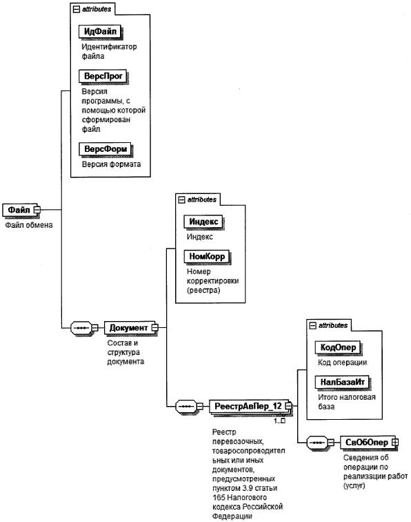 | Реестр перевозочных, товаросопроводительных или иных документов, предусмотренных пунктом 3.9 статьи 165 Налогового кодекса Российской Федерации | РеестрАвПер_12 | С | ОМ | Состав элемента представлен в таблице 3.9 |