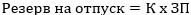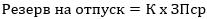 К - общее количество не использованных всеми сотрудниками дней отпуска за период с начала работы на дату расчета (конец каждого месяца, квартала, года);