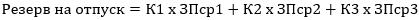 К1, К2, К3 - количество всех дней неиспользованного отпуска по каждой группе персонала;