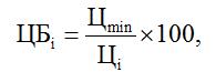 Также, согласно пункту 16 Правил количество баллов, присуждаемых по критериям оценки "цена контракта или сумма цен единиц товара, работы, услуги", "стоимость жизненного цикла" (ЦБi), определяется по формуле: