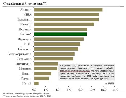 - с учетом региональных и "забалансовых" мер поддержки, а также сокращения доходов бюджетов бюджетной системы совокупный размер фискального импульса составляет более 9,0% ВВП.