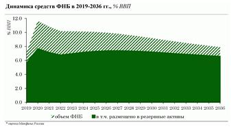 Управление средствами Фонда национального благосостояния (ФНБ). Согласно базовому варианту прогноза социально-экономического развития Российской Федерации на период до 2036 года предполагается сохранение цен на нефть марки "Юралс" несколько выше базового уровня в 2021 - 2030 гг., что обеспечит пополнение средств ФНБ. В последующий период ожидается сохранение цен на нефть на базовом уровне и стабилизация объема накопленных средств в ФНБ. В результате объем средств ФНБ к 2036 году в базовом сценарии составит около 7,9% ВВП, в том числе ликвидная часть - около 7% ВВП на всем долгосрочном горизонте.
