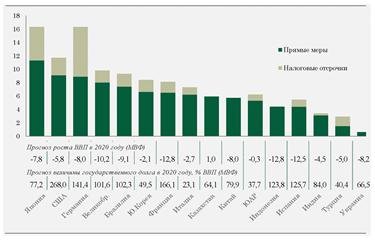 - в целях поддержки бизнеса и населения реализуются пакеты антикризисных мер в стоимостном выражении эквивалентном более 4,5% ВВП;