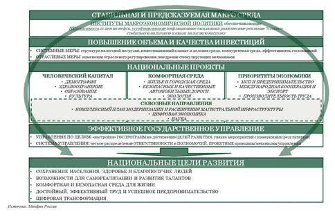 В течение 2019 и начала 2020 года ключевой задачей единой экономической политики (бюджетной, монетарной и структурной) было содействие достижению национальных целей развития страны посредством обеспечения устойчивых темпов роста экономики и расширения потенциала сбалансированного развития: