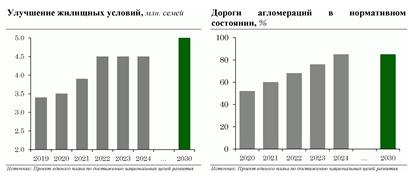 - Дополнительный импульс достижению национальных целей развития придали мероприятия, вытекающие из Послания Президента Федеральному Собранию, в целях реализации которых был уточнен федеральный бюджет и соответствующие государственные программы на федеральном и региональном уровнях.
