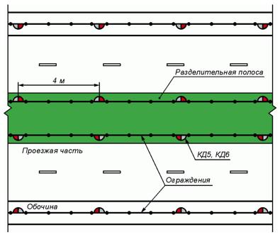 5.2.5.3 Счетчики устанавливают над полосой движения на высоте не менее 6,0 м или сбоку от проезжей части на столбе, мачте освещения. Магнитно-индуктивные детекторы (петлевые) счетчиков закладывают в пропиленную в верхнем слое дорожного покрытия канавку на глубину от 0,02 до 0,04 м, которую после укладки заделывают.