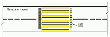 - соответствующей горизонтальной разметкой в одном уровне с проезжей частью.