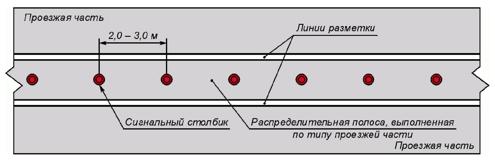 На дорогах с конструктивно выделенной разделительной полосой шириной более 2,5 м островки безопасности не устраивают. При этом пешеходный переход в пределах разделительной полосы должен иметь покрытие усовершенствованного типа или плитку.