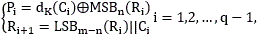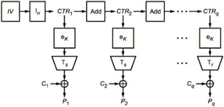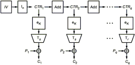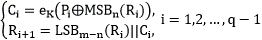 С использованием приведенных значений K, IV и C с помощью операции расшифрования воспроизводятся исходные значения ,