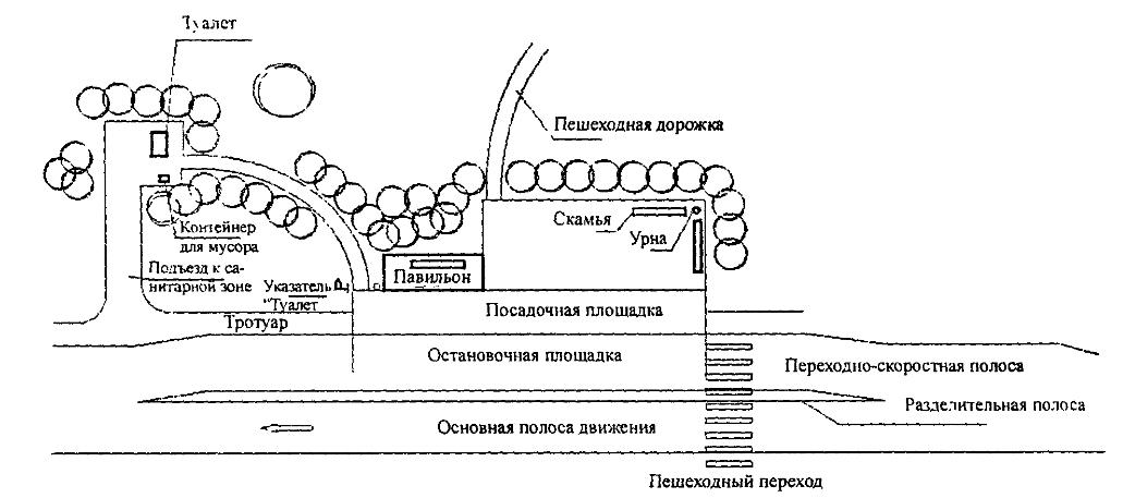 - заездной карман (при размещении остановки в зоне пересечения или примыкания автомобильных дорог);
