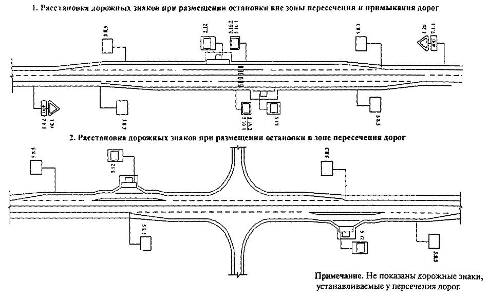 Рис. Б.4. Расстановка дорожных знаков у автобусных остановок