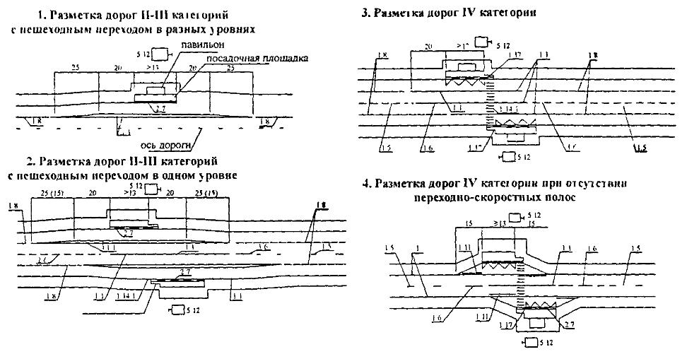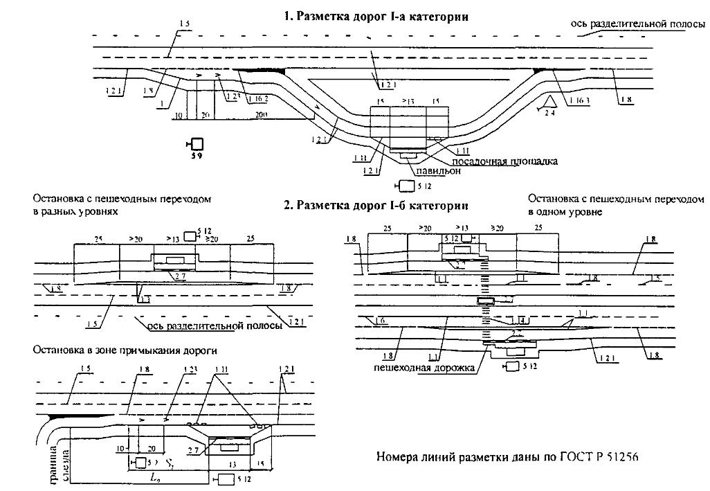 Рис. Б.5. Разметка дорог у автобусных остановок на дорогах I категории