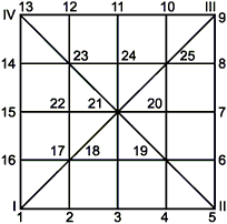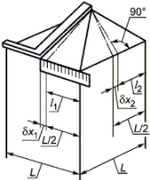 По результатам измерений в диагональных сечениях определяют отклонения в угловых точках II (5) и IV (13) (см. рисунок В.1): .