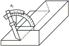 4.4 Угловые размеры проверяют угломерами, а их отклонения, выраженные линейными единицами, - линейками и щупами с применением угольников, калибров, шаблонов.