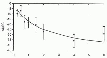3. Для определения скорости и степени абсорбции в исследованиях биоэквивалентности обычно используется кривая "концентрация - время". Следующие фармакокинетические параметры и заранее установленные границы их допустимых отклонений позволяют судить о биоэквивалентности сравниваемых лекарственных препаратов путем оценки их сравнительной биодоступности: