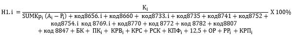 - операции с повышенными коэффициентами риска (сумма кодов 8731, 8809.i, 8814.i, 8816, 8818.i, 8820, 8822, 8824.i, 8826.i, 8828.i, 8830.i, 8834.i, 8836.i, 8838 за вычетом кода 8856.i). Показатель
