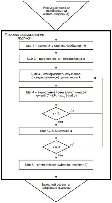 3.1.9 процесс формирования подписи (signature process): Процесс, в качестве исходных данных которого используются сообщение, ключ подписи и параметры схемы ЭЦП, а в результате формируется цифровая подпись.