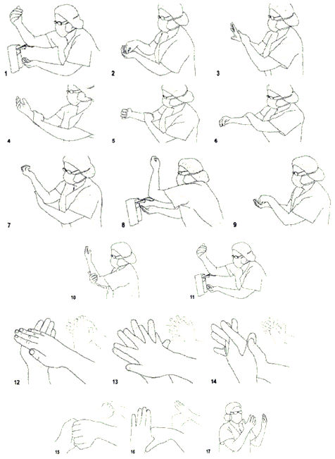 АЛГОРИТМ ОБРАБОТКИ РУК ХИРУРГОВ КОЖНЫМ АНТИСЕПТИКОМ <4>
