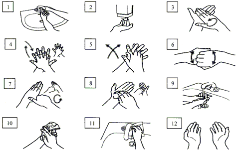 6.2. Мытье рук жидким мылом и водой необходимо при их явном загрязнении, при этом следует соблюдать определенную последовательность (приложение 5 к настоящим МУ).