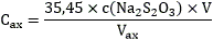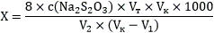 - объем раствора тиосульфата натрия, израсходованный на титрование, см3;