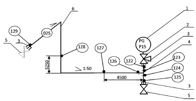 В настоящем приложении приведен пример схемы расположения сварных швов для трубной проводки 025.