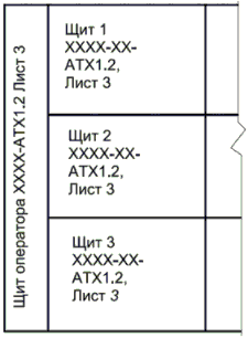 6.3.6. Чертеж составного щита разрабатывают для многопанельных (многошкафных) щитов. На чертеже приводят спецификацию и вид спереди.