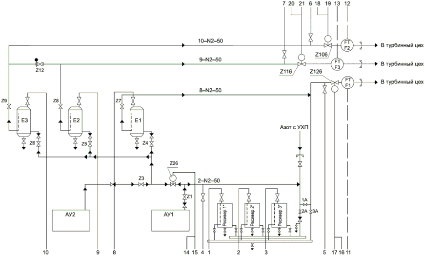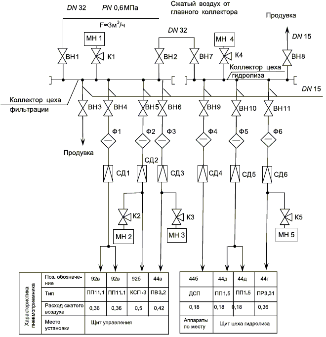 Рисунок Е.2. Пример выполнения принципиальной схемы пневмопитания