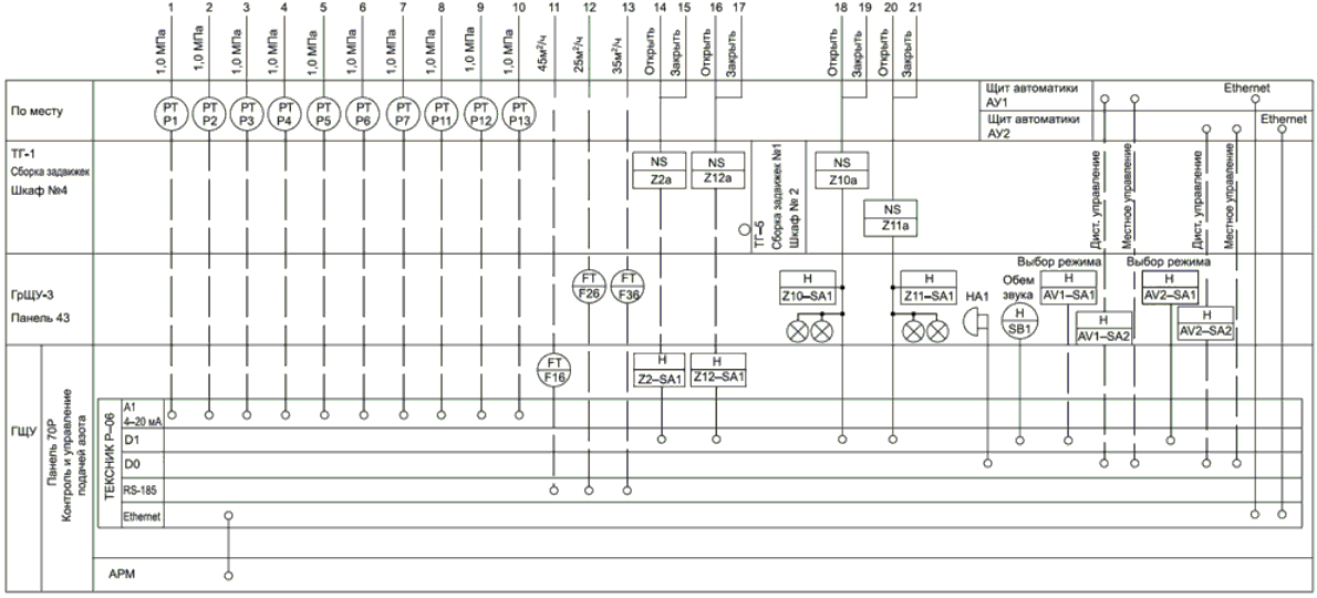 Рисунок В.3б. Пример выполнения схемы АСУ ТП развернутым способом (начало схемы на рисунке В.3а)