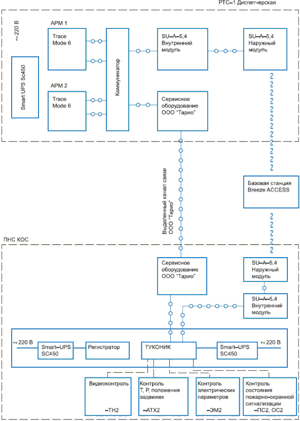 Г.2. Пример выполнения фрагмента двухуровневой структурной схемы АСУ ТП (распределенная система управления)