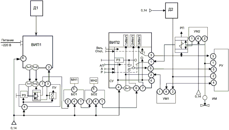 Рисунок Е.1. Пример выполнения принципиальной пневматической схемы контура управления