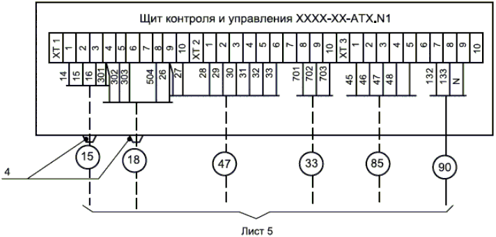 5.1.3. Объекты управления (отделения, системы, установки, агрегаты, аппараты) и относящиеся к ним средства автоматизации, не связанные между собой и имеющие одинаковое оснащение СА, изображают на схемах и планах расположения один раз, поясняя текстовыми указаниями.