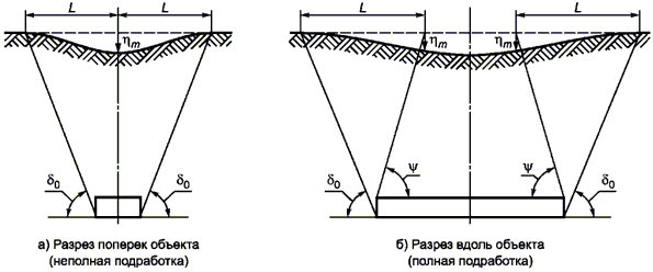 L - длина полумульды (часть мульды между границей и точкой максимального оседания), определяемая графически из приведенного рисунка;