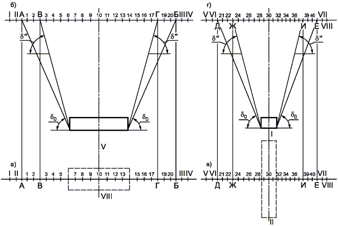 I, II, III, IV, V, VI, VII, VIII - опорные реперы;