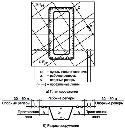 Схема к составлению проекта размещения реперов при открытом способе строительства подземного сооружения представлена на рисунке Т.2.