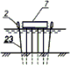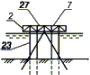7.7. Методика измерения глубин под эстакадой аналогична измерению глубин перед сооружением. Ориентирование створного троса при этом осуществляется по поперечным рядам свай или по дополнительному створному знаку (бую), устанавливаемому на поверхности воды перед сооружением.
