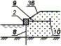 3.2.6. ячеистое сооружение: Сооружение из замкнутых ячеек с заполнением грунтом, прочность и устойчивость которого обеспечивается сопротивлением элементов ограждения, массой засыпки и сопротивлением грунта основания.