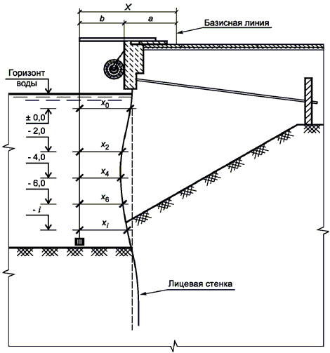 Рисунок 8.1. Схема измерений наклона (прогиба) лицевой стенки сооружения