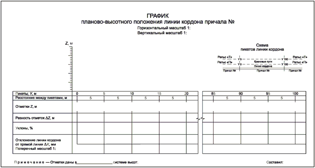 Рисунок 12.1. График планово-высотного положения линии кордона причала