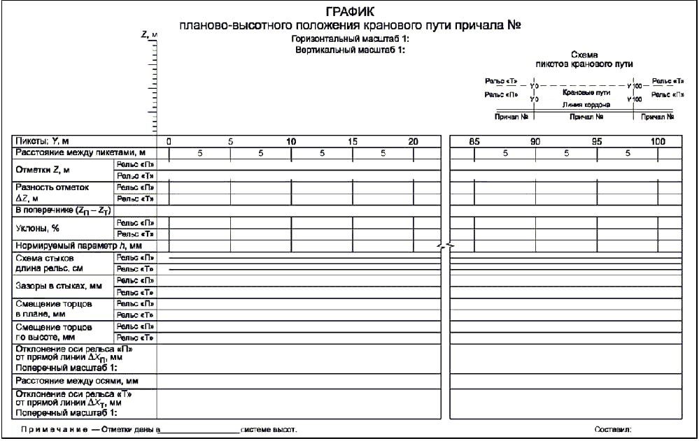 Рисунок 12.2. График планово-высотного положения кранового пути причала