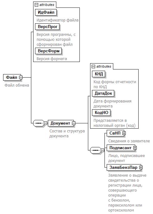 1. Настоящий формат описывает требования к XML файлам (далее - файл обмена) передачи в налоговые органы заявления о выдаче свидетельства о регистрации лица, совершающего операции с бензолом, параксилолом или ортоксилолом, в электронной форме.