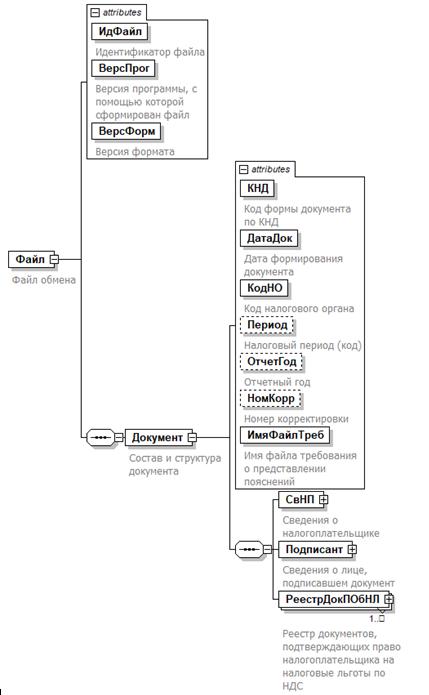 | Имя файла требования о представлении пояснений | ИмяФайлТреб | А | T(1-255) | О | |