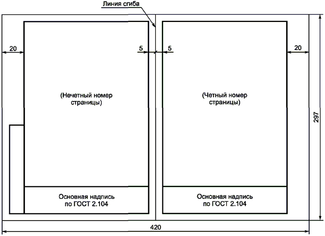 9.1 Для двустороннего копирования листы документа выполняют сдвоенными с линией сгиба посередине. Основную надпись приводят на обеих половинах каждого листа, как показано на рисунке 24, за исключением дополнительных граф, которые помещают только на нечетной странице. (в ред. Изменения N 1, утв. Приказом Росстандарта от 30.12.2020 N 1439-ст)