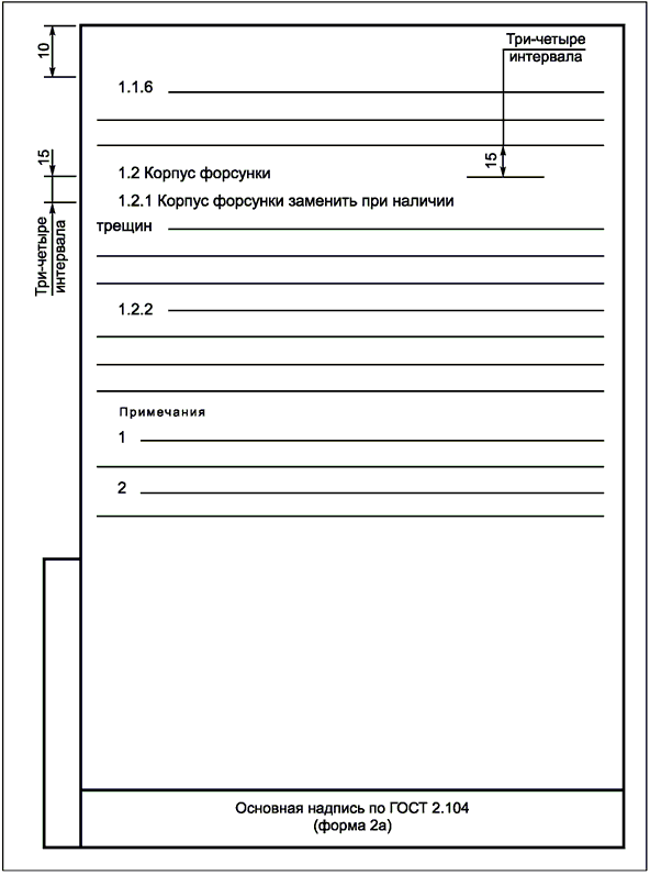 - ведут запись в нижней части поля строки. Записи не должны сливаться с линиями, разграничивающими строки и графы;