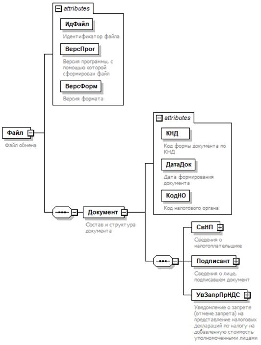 XML схема файла обмена приводится отдельным файлом и размещается на официальном сайте Федеральной налоговой службы в информационно-телекоммуникационной сети "Интернет".