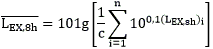 Примечание 2 - Если необходимо усреднить звуковое воздействие за n дней, например за неделю, при известном ежедневном уровне шумового воздействия (), то среднее значение