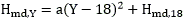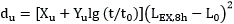 Порог слышимости (в дБ), связанный с возрастом и воздействием шума (HTLAN) H' для людей, подвергавшихся воздействию шума, рассчитывают по формуле